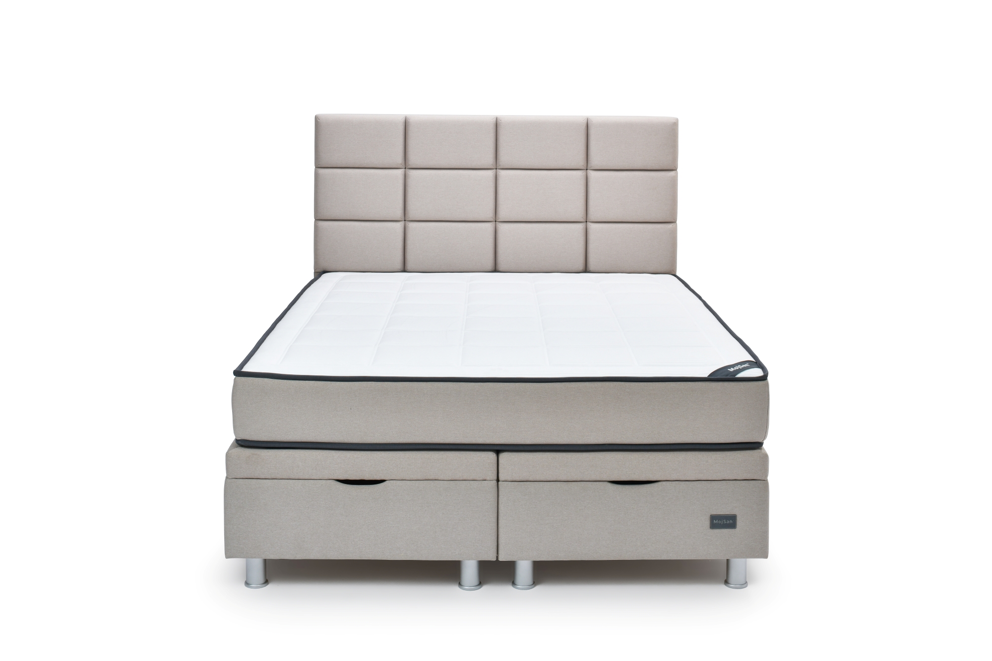 Boxspring krevetni sistemi su postali deo vizualnog identiteta kako hotelskih tako i spavaćih soba u mnogim domaćinstvima. Sistem se sastoji od baze kao osnovnog elementa, uzglavlja te nogica. Svaki od elemenata ima više varijacija te je moguće kombinovanjem tih opcija individualizirati vlastiti boxspring krevetni sistem. Boxspring krevetni sistemi MojSan imaju za cilj da uštede dragoceni prostor sobe, omoguće jednostavno održavanje prostora, osiguraju maksimalnu potporu dušeku i značajno utiču na ukupni dojam udobnosti. Praktičnost se ogleda u mogućnosti sklapanja dva single kreveta u jedan gde jednostavno radite transformaciju od sobe za partnere do sobe sa dva odvojena ležaja.