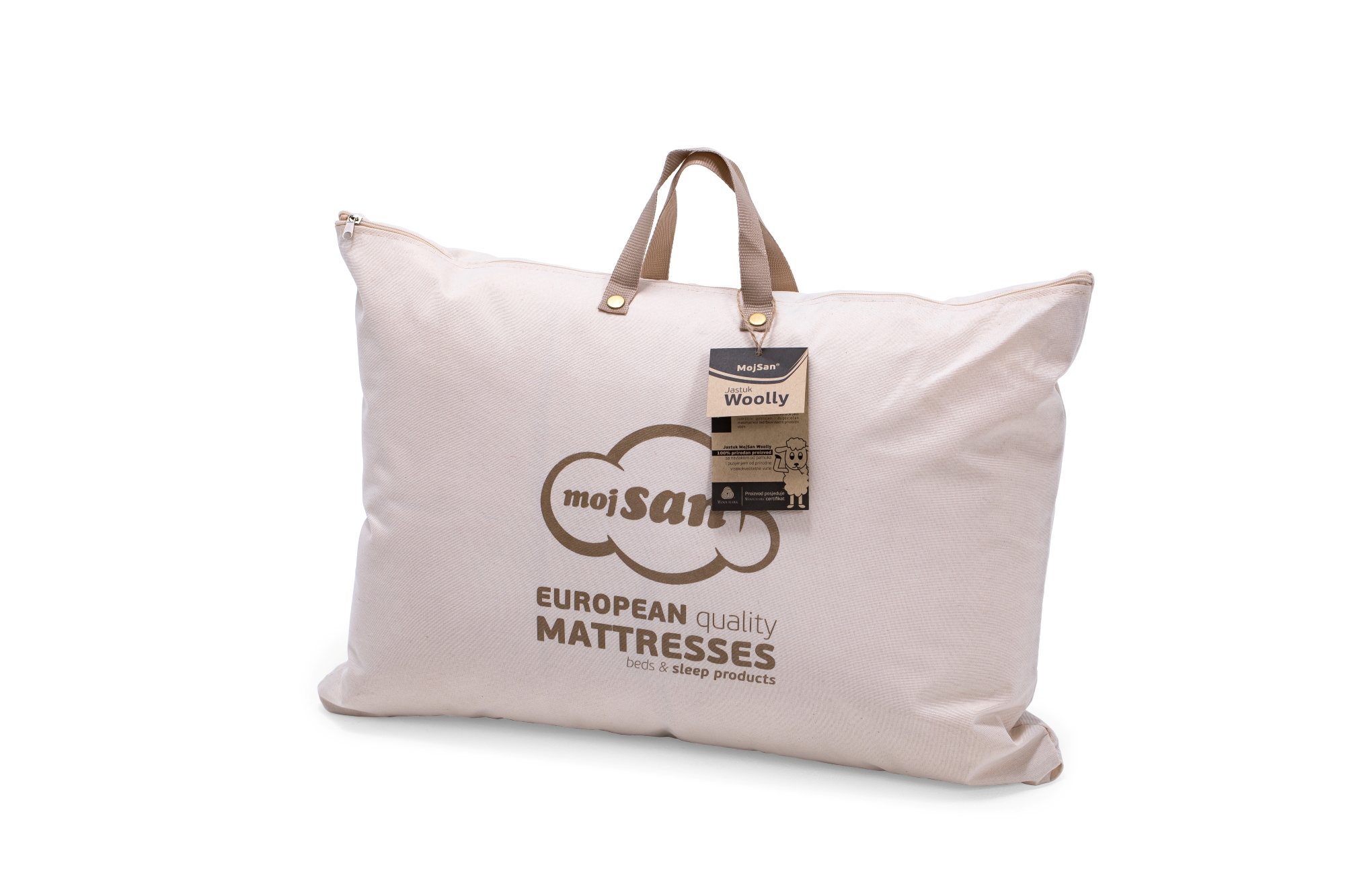 MojSan Woolly kolekcija proizvoda u osnovi ima vrhunsku WOOLMARK čistu novu vunu koja garantuje savršene uslove za spavača koji preferiraju 100% prirodan ambijent spavanja.